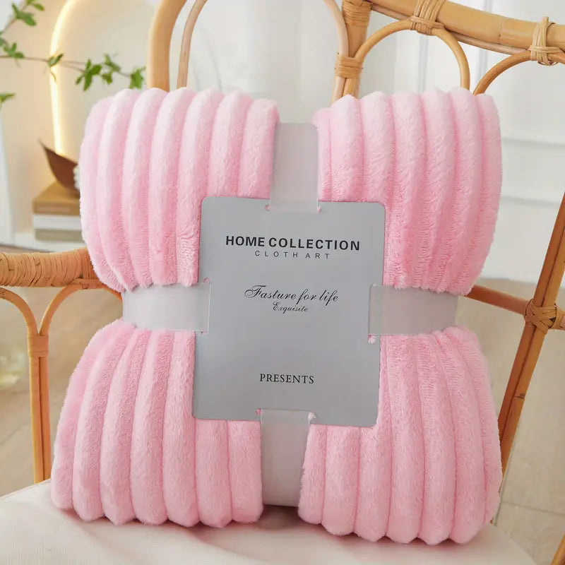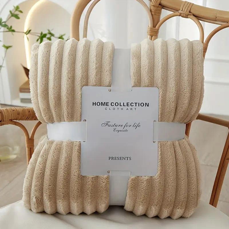 Blanca™ | Gestreifte Flanell Wohndecke, Premium Polyester, Weich, Ganzjahres-Komfort & Geschenk