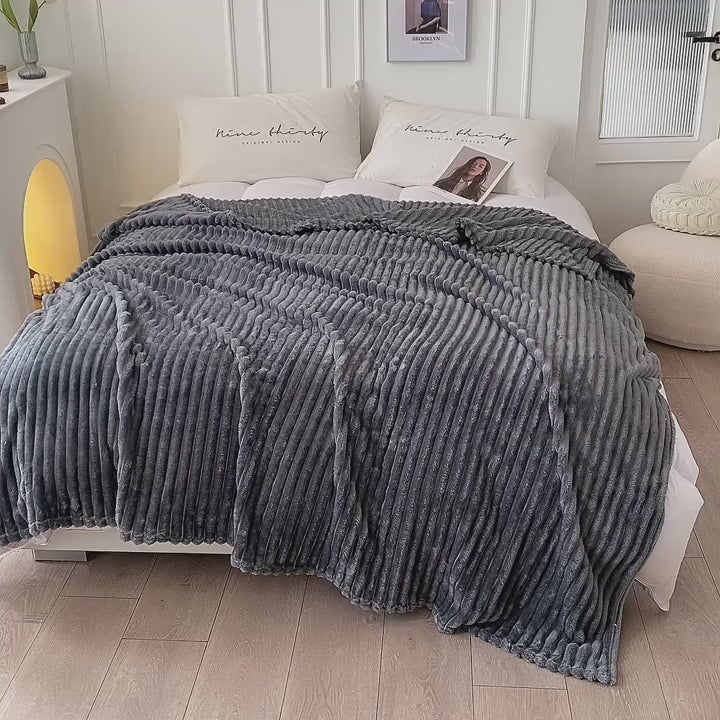 Für gemütliche Wärme: Gestreifte Premium-Flanelldecke aus weichem Polyester für Ganzjahres-Komfort.
