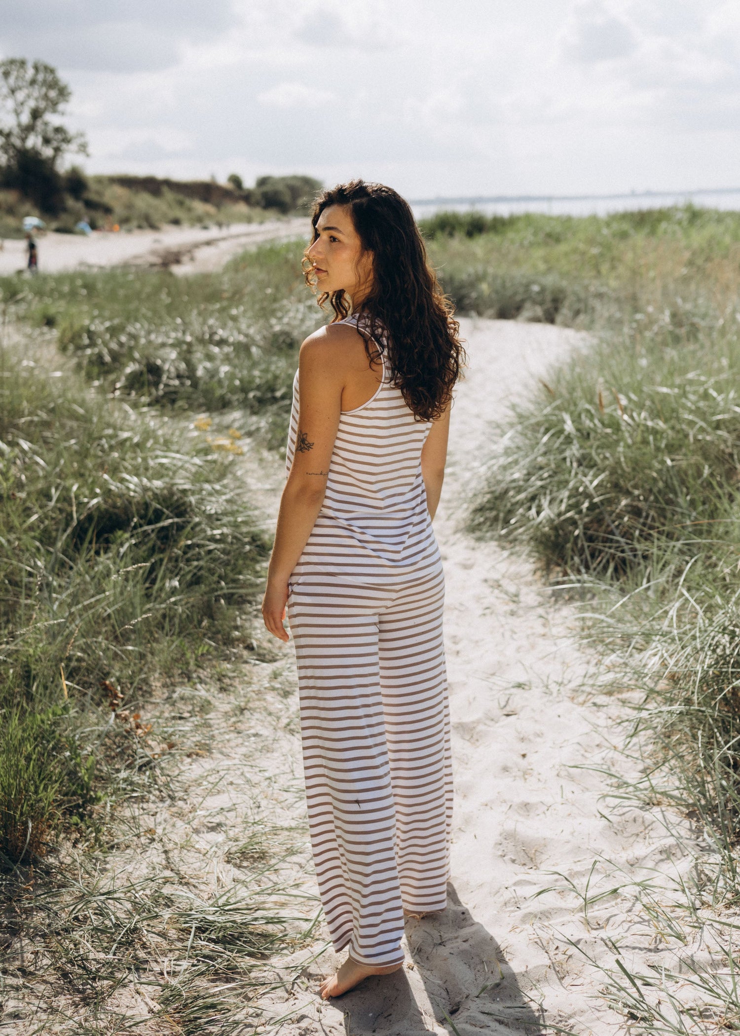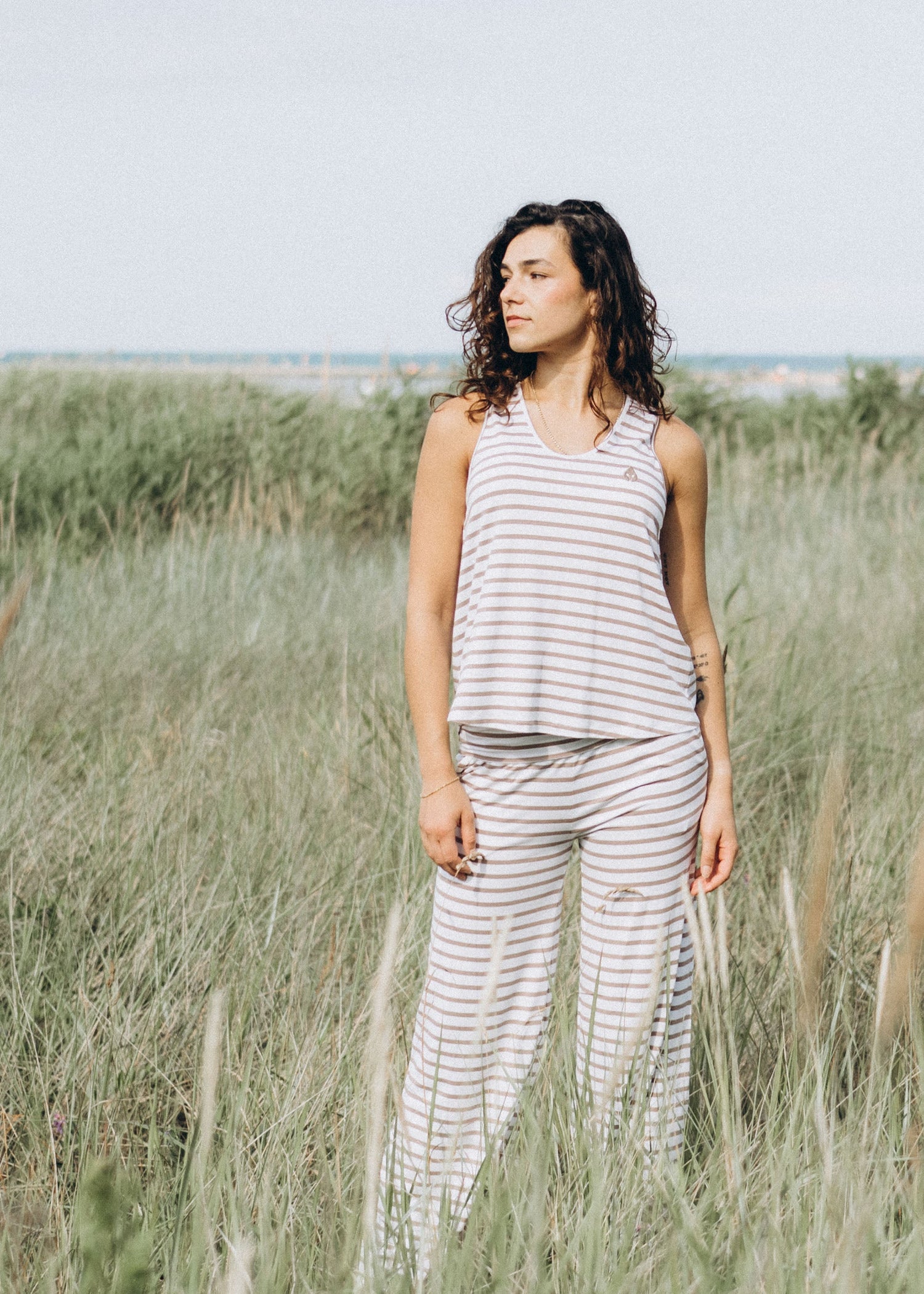 Ein Schnitt, der Dich durch den Alltag trägt: bequem, stilvoll und mit einem Hauch Individualität. Unsere Hose ODESA vereint genau das. Ein weiter, fließender Fall bis zum Fuß, ein femininer Look mit maritimen Streifen und ein Tragegefühl, das Du nicht mehr missen willst.