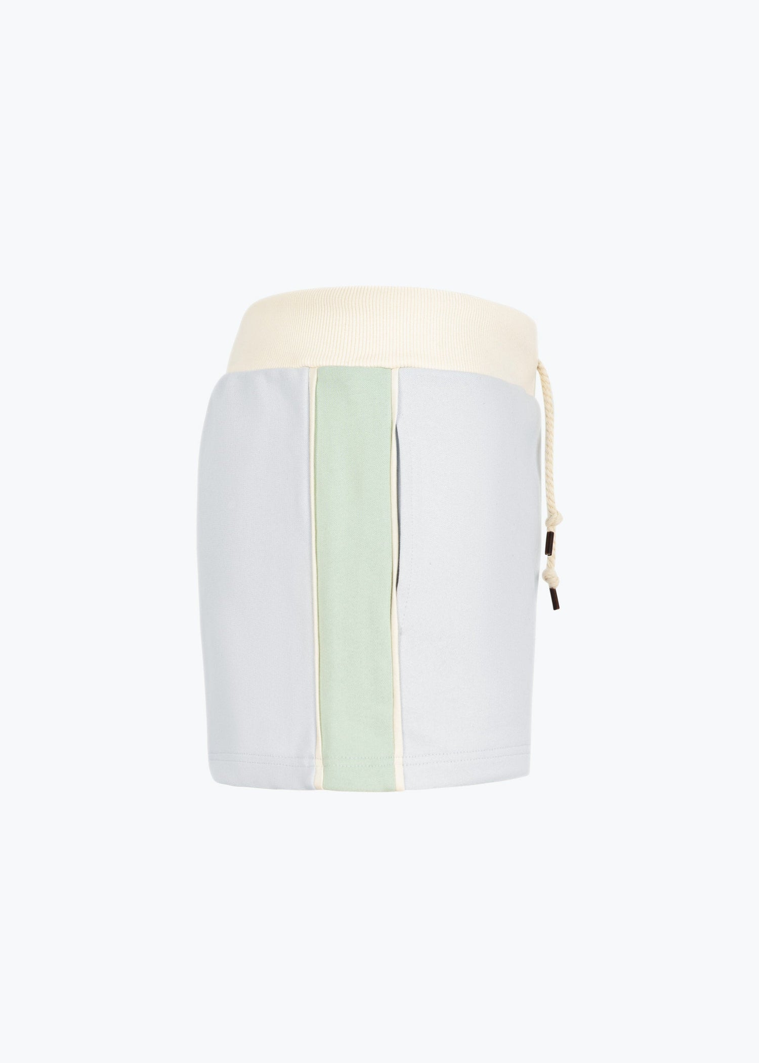 Das Material aus 100% Baumwolle (biologisch) sorgt für ein angenehm weiches Tragegefühl, während der Schnitt maximale Bewegungsfreiheit bietet. Die Kombination der drei Farben verleiht der Short einen frischen, dynamischen Look, der zu allem passt – vom sportlichen T-Shirt bis zum kuscheligen Sweater.